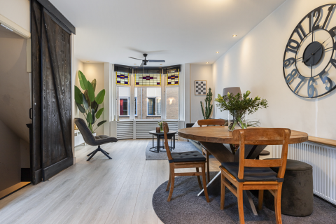 Geweldig appartement, totaal gerenoveerd en luxe afgewerkt, gesitueerd op de 1e verdieping van een voormalig kaaspakhuis in de binnenstad. De heerlijk ruime, lichte woonkamer heeft openslaande deuren met een Frans balkon (op het zuiden) en prachtig uitzicht op de gracht en de Gouwekerk. Het complex is voorzien van een lift en er is zelfs een eigen parkeerplaats bij te koop. Een uniek object! Dit moet je zien!